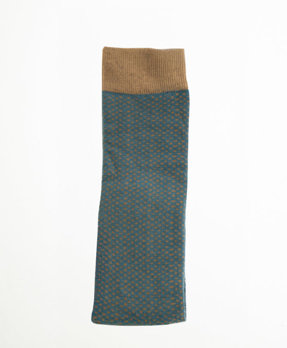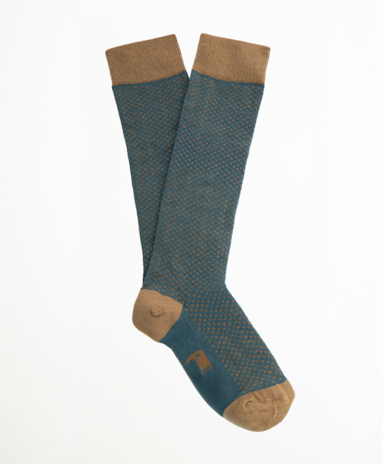 Calcetín de caña alta algodón verde agua con ojo de perdiz marrón.