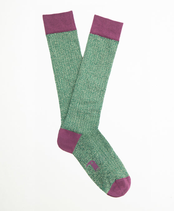 Calcetín de caña alta purpurina verde.