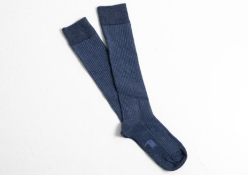 Calcetín de caña alta de algodón azul con ojo de perdiz.