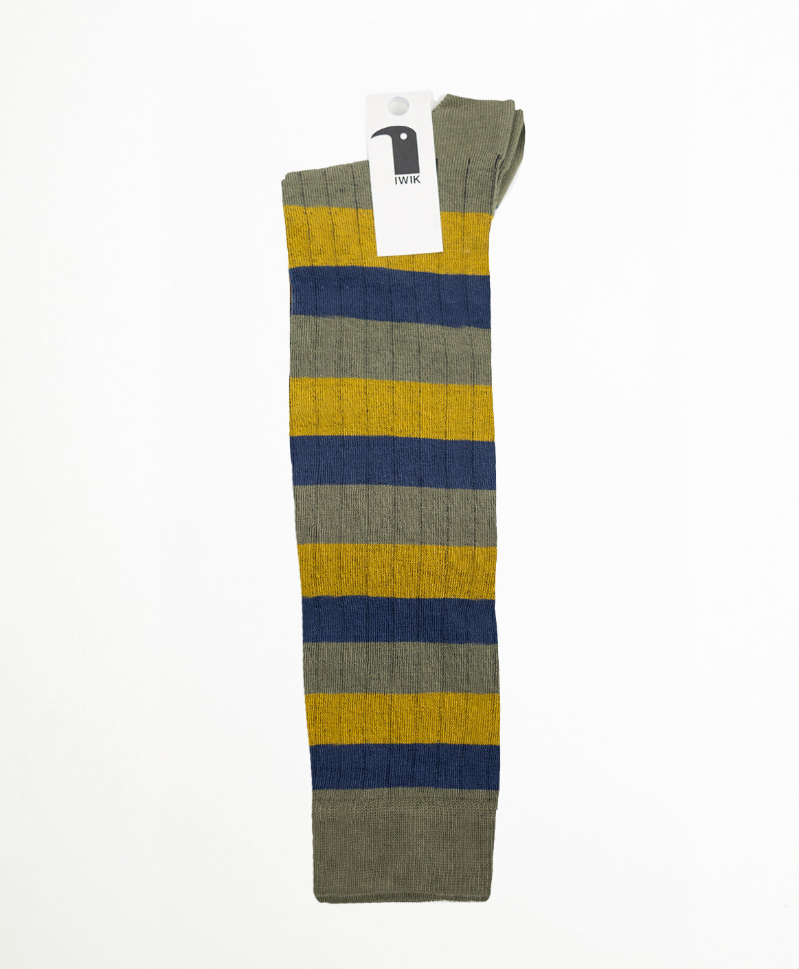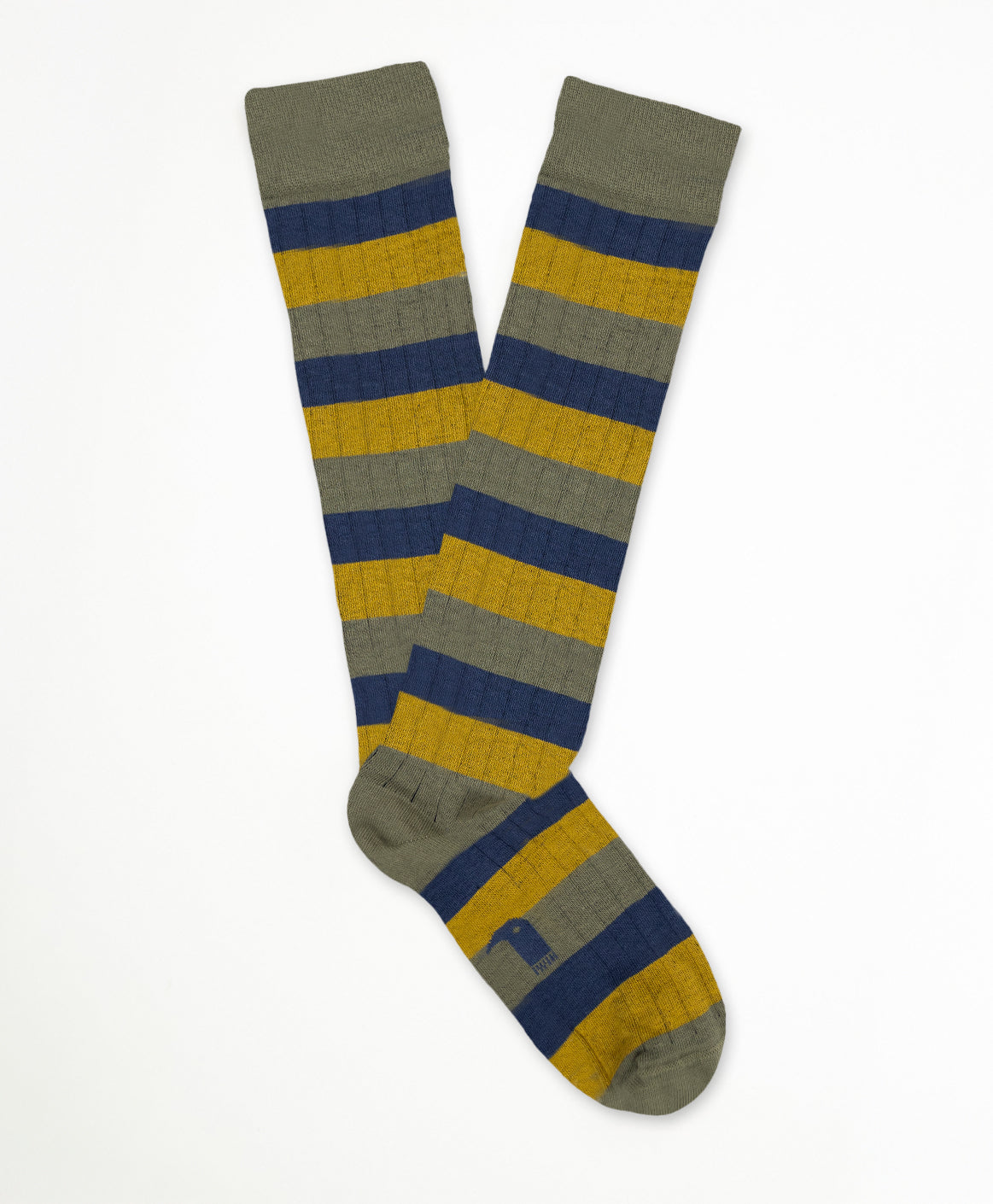 Calcetín de caña alta con rayas Verde, azul y mostaza